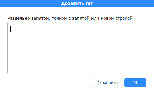 При нажатии на в блоке Теги откроется контекстное меню, содержащее следующие элементы