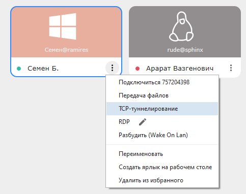 С помощью клиента RuDesktop пробросить порт локального устройства на порт удалённого устройства
