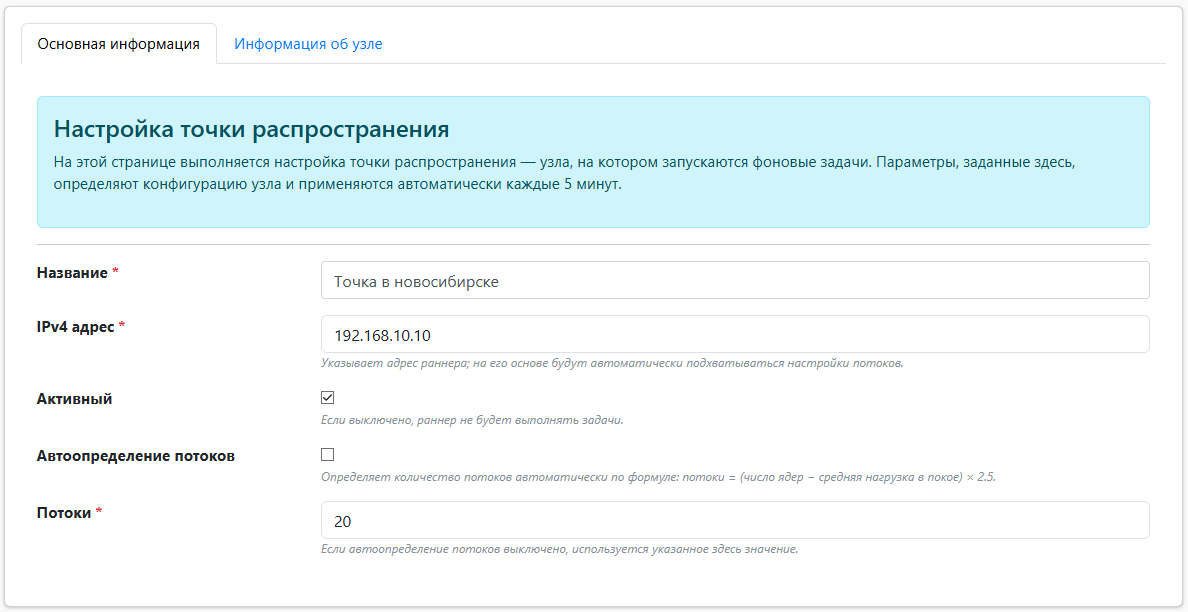 Параметры, заданные здесь, определяют конфигурацию узла и применяются автоматически каждые 5 минут