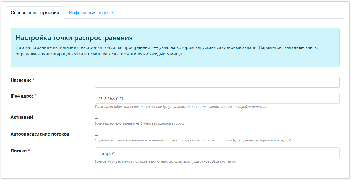 Точки распространения — эта страница предназначена для создания узлов, на которых будут запускаться фоновые задачи, такие как выполнение политик и прочее