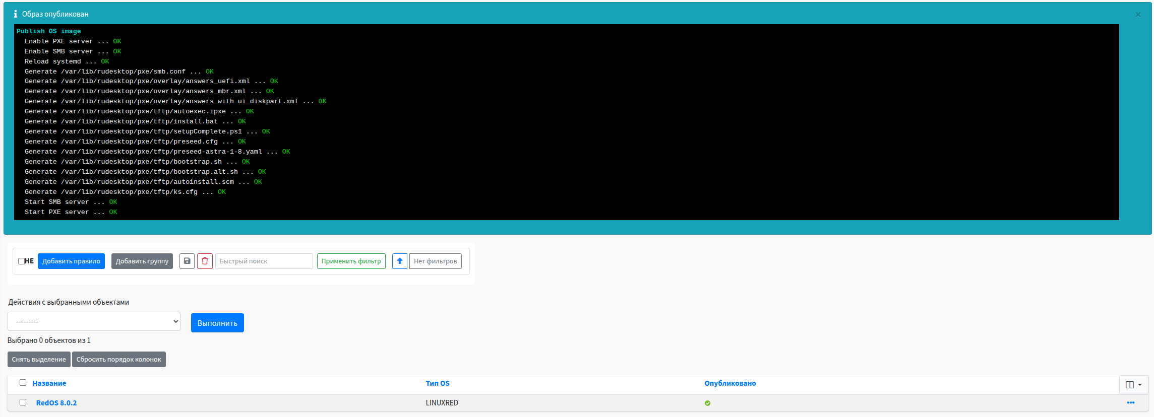 Опубликовать — опубликовать образ ОС на PXE-сервере
